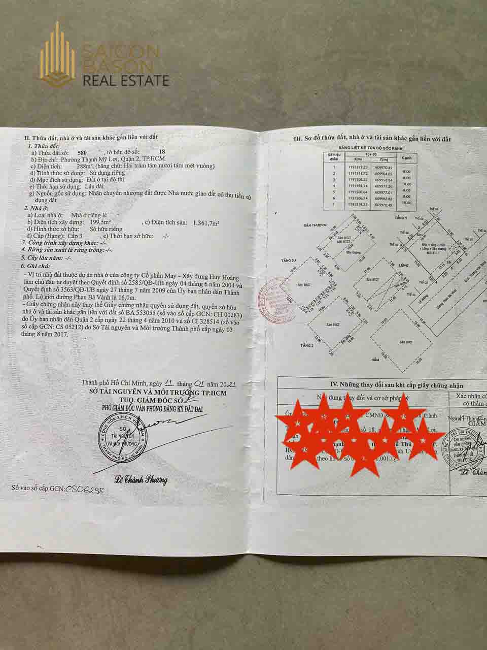 - Diện tích công nhận: 288m2