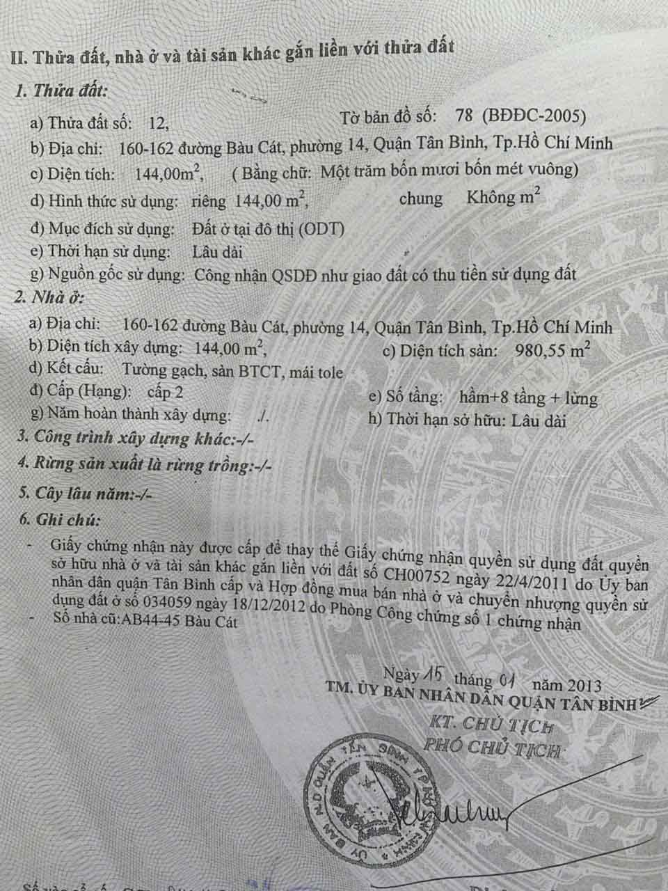BÁN KHÁCH SẠN MẶT TIỀN ĐƯỜNG BÀU CÁT ĐÔI – CƠ HỘI ĐẦU TƯ TẠI QUẬN TÂN BÌNH