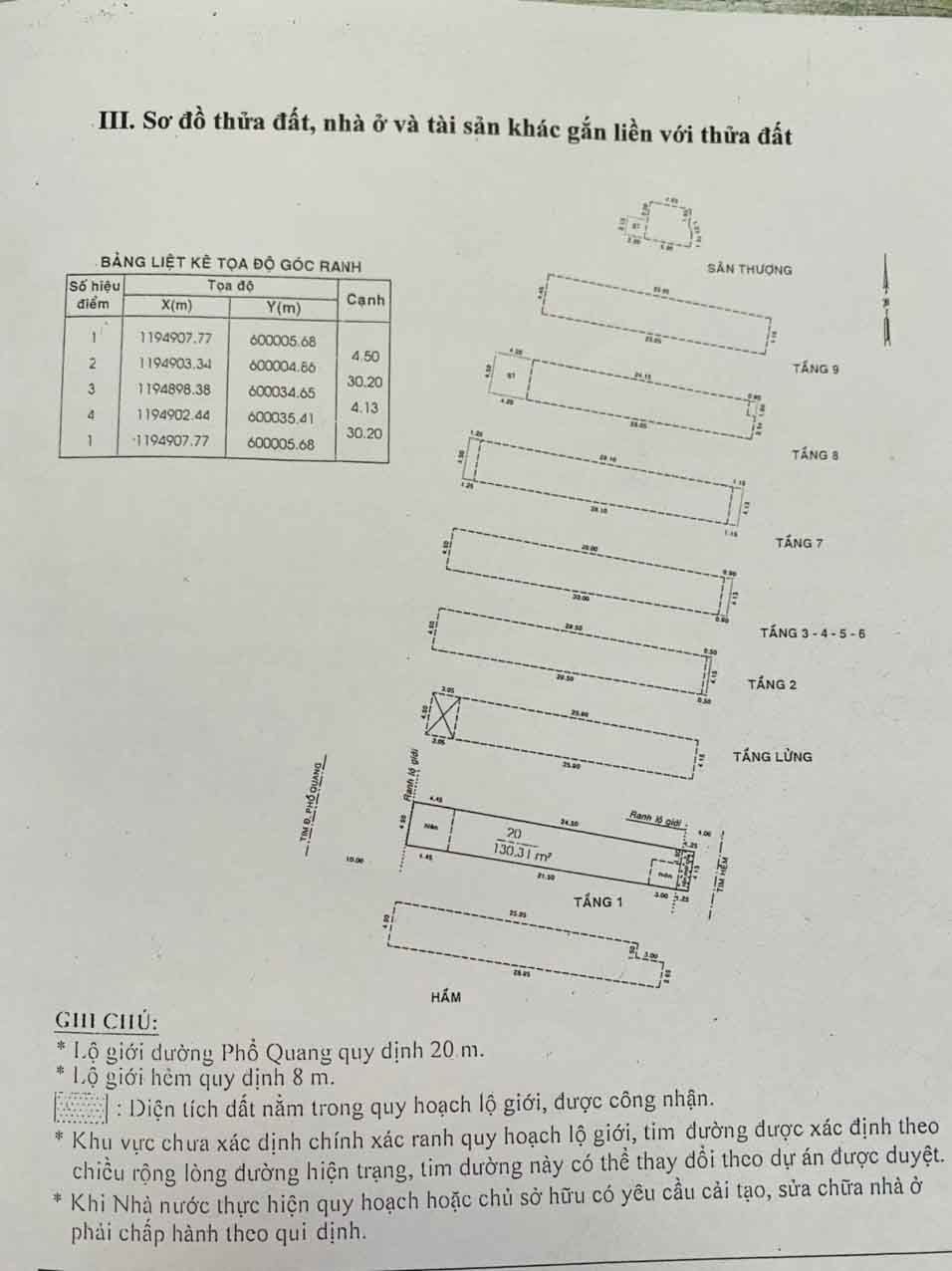 - Diện tích đất Công nhận: 130,3m² ( 4,5m x 30m) “Tốp Hậu 4,13m”