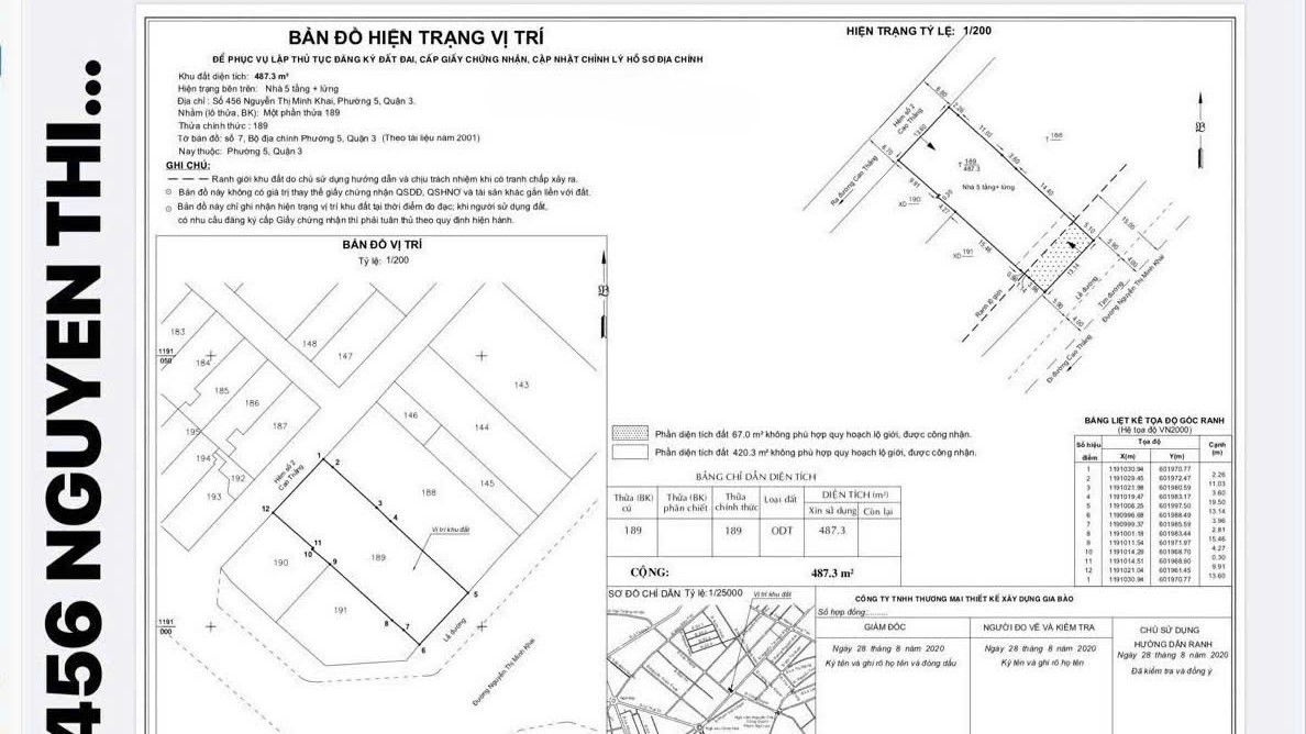 - Diện tích đất công nhận: 487.3 m2 (13.14m x 38m – nở hậu 13.6m)